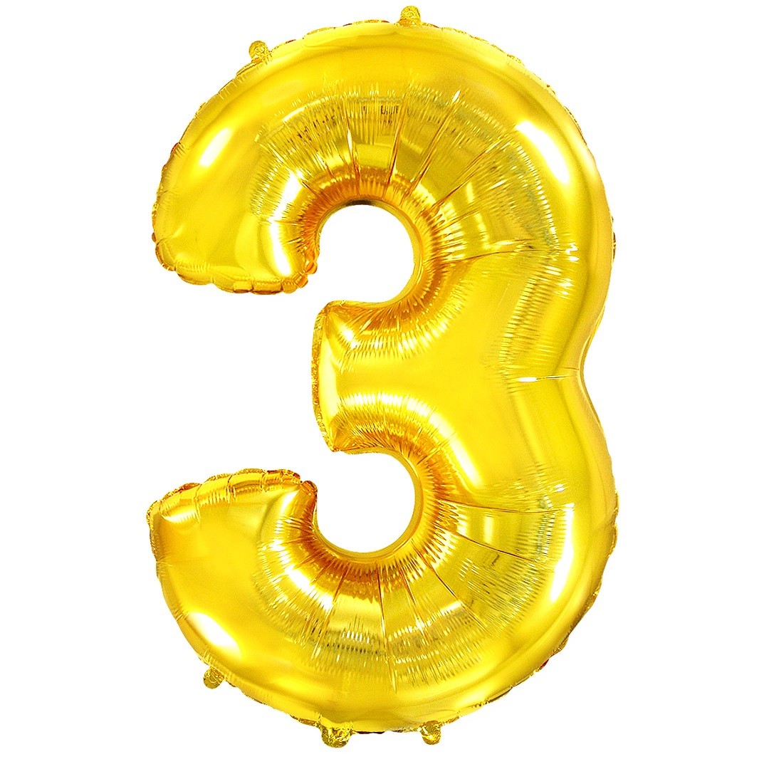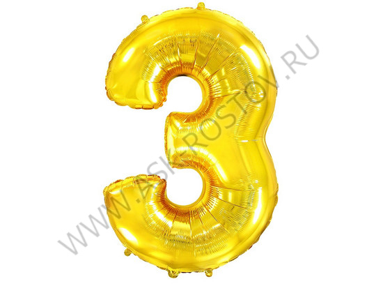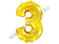 Шар (40''/102 см) Цифра, 3, Золото, Металлик, 1 шт. в уп.