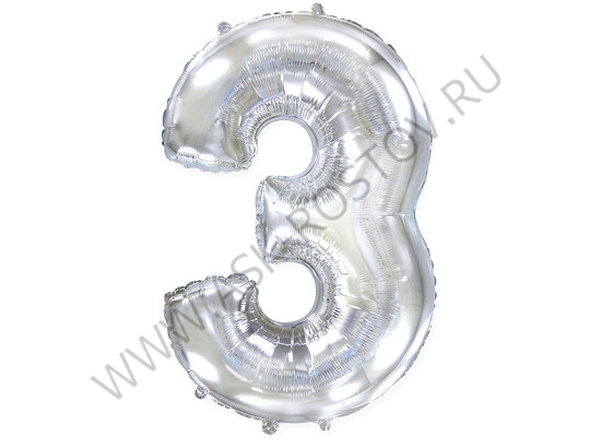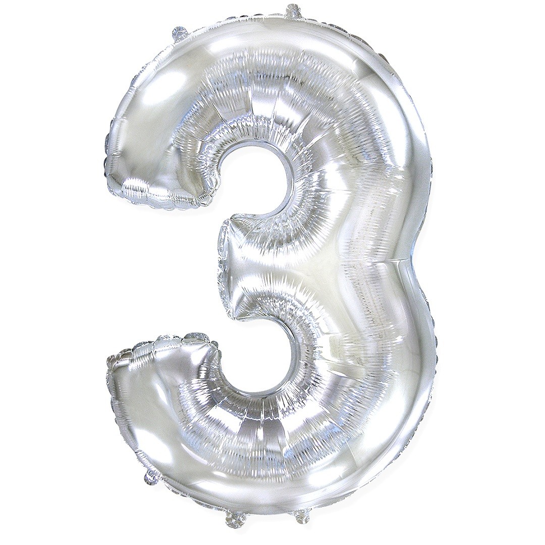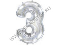 Шар (40''/102 см) Цифра, 3, Серебро, Металлик, 1 шт. в уп.