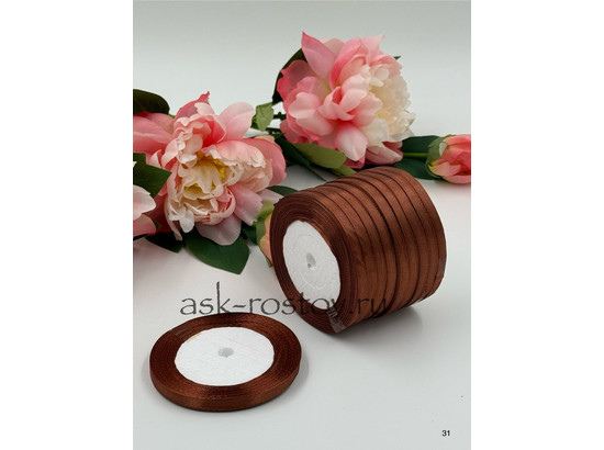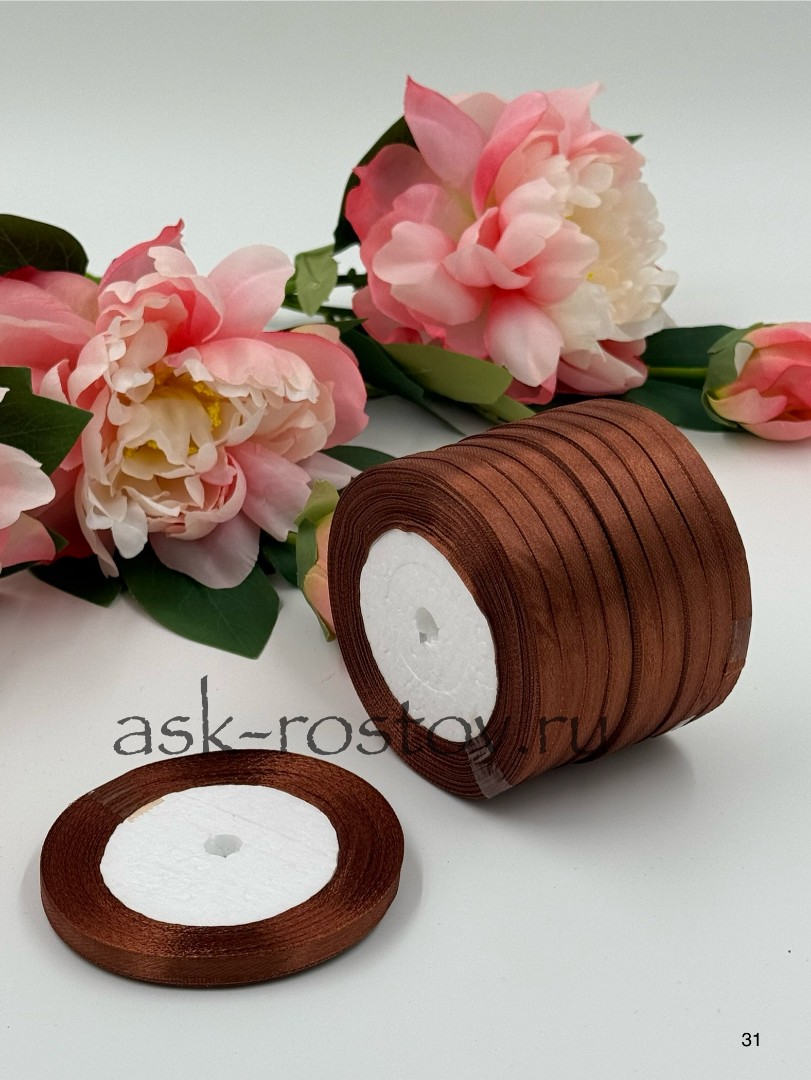 Лента атласная (0,6 см*22,85 м) Коричневый, 1 шт.