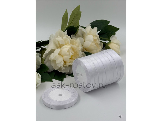Лента атласная (1,0 см*22,85 м) Белый, 1 шт