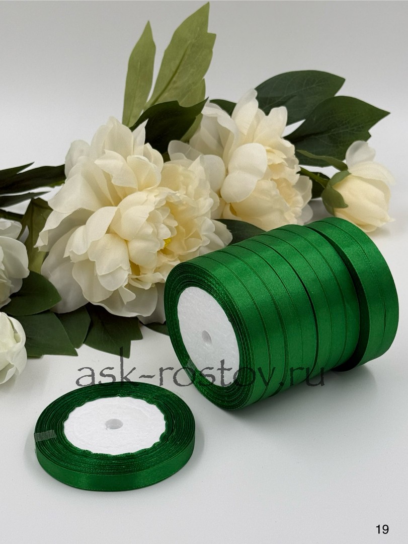 Лента атласная (1,0 см*22,85 м) Изумрудный, 1 шт.