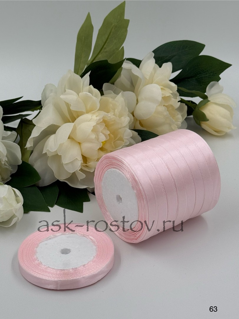 Лента атласная (1,0 см*22,85 м) Бледно-розовый, 1 шт.