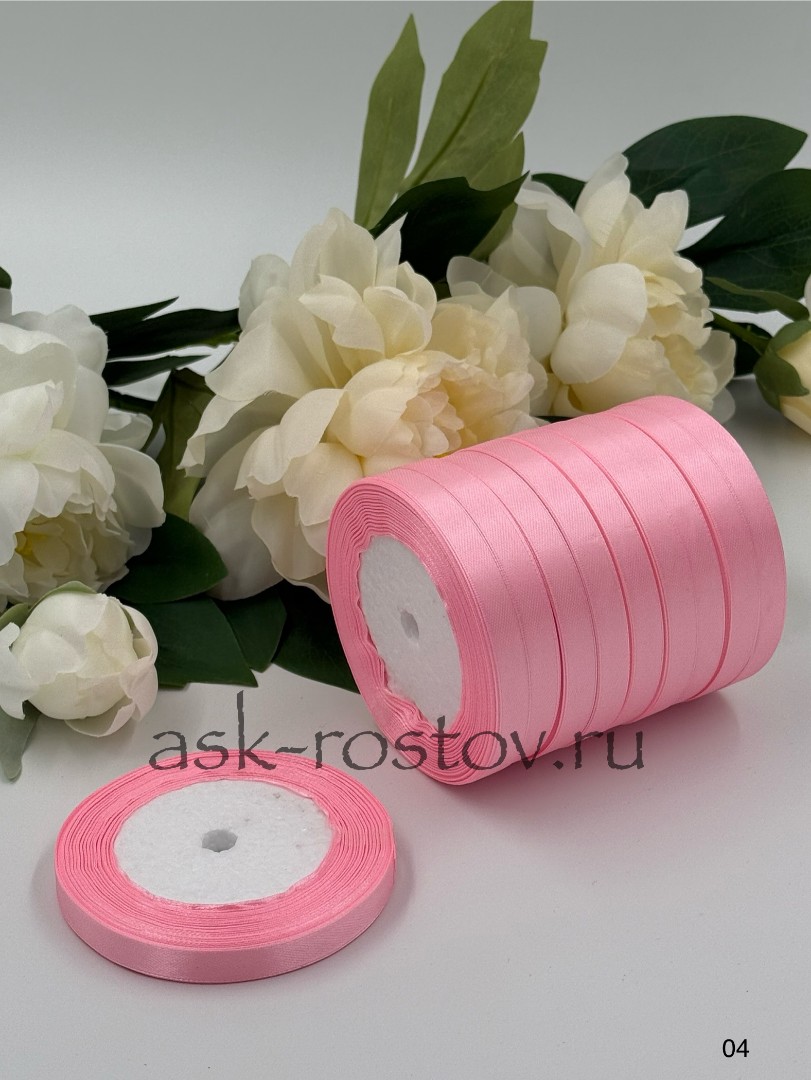 Лента атласная (1,0 см*22,85 м) Розовый, 1 шт.