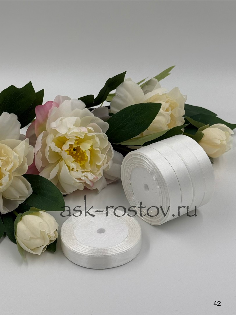 Лента атласная (1,5 см*22,85 м) Белый, 1 шт