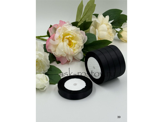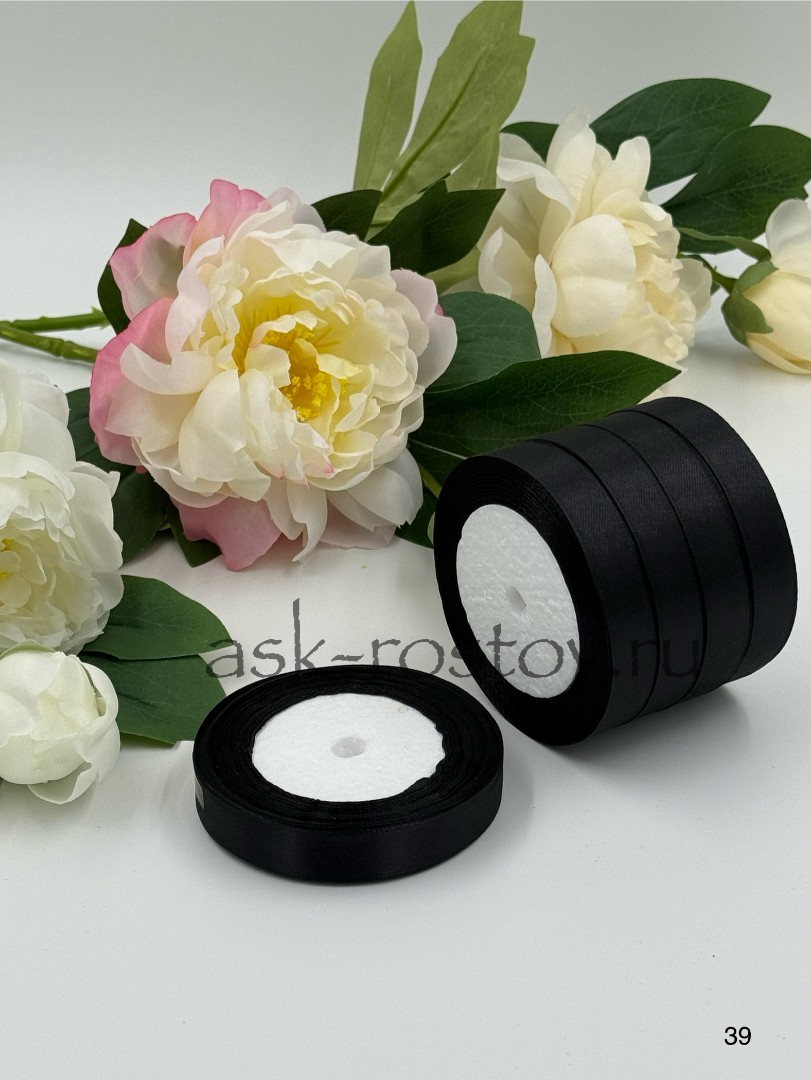 Лента атласная (1,5 см*22,85 м) Черный, 1 шт.