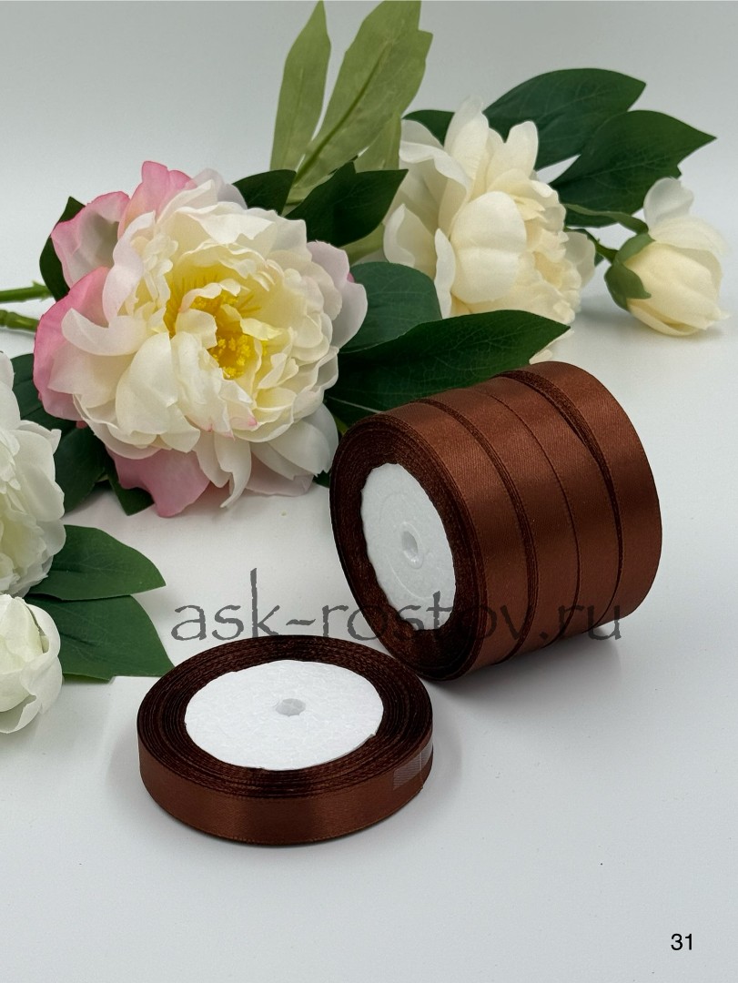Лента атласная (1,5 см*22,85 м) Коричневый, 1 шт.