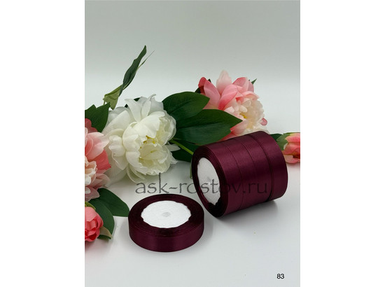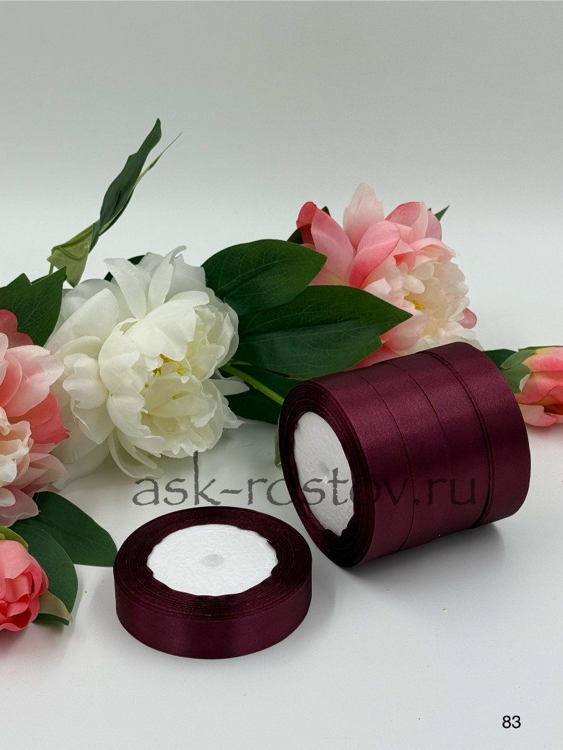 Лента атласная (2 см*22,85 м) Бордовый, 1 шт.