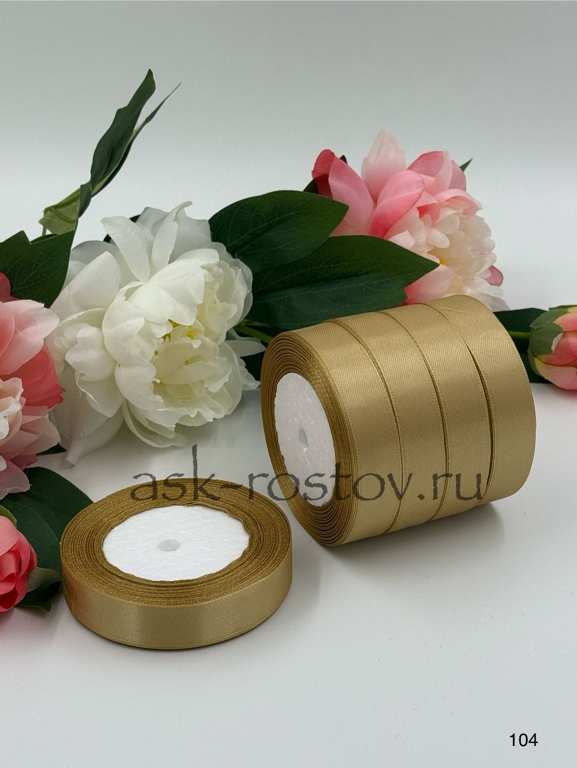 Лента атласная (2,0 см*22,85 м) Золото, 1 шт.