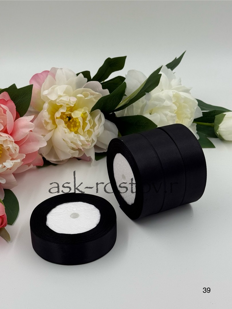 Лента атласная (2,5 см*22,85 м) Черный, 1 шт.