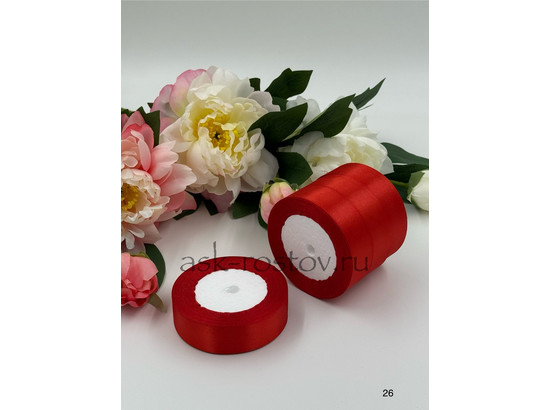 Лента атласная (2,5 см*22,85 м) Красный, 1 шт.