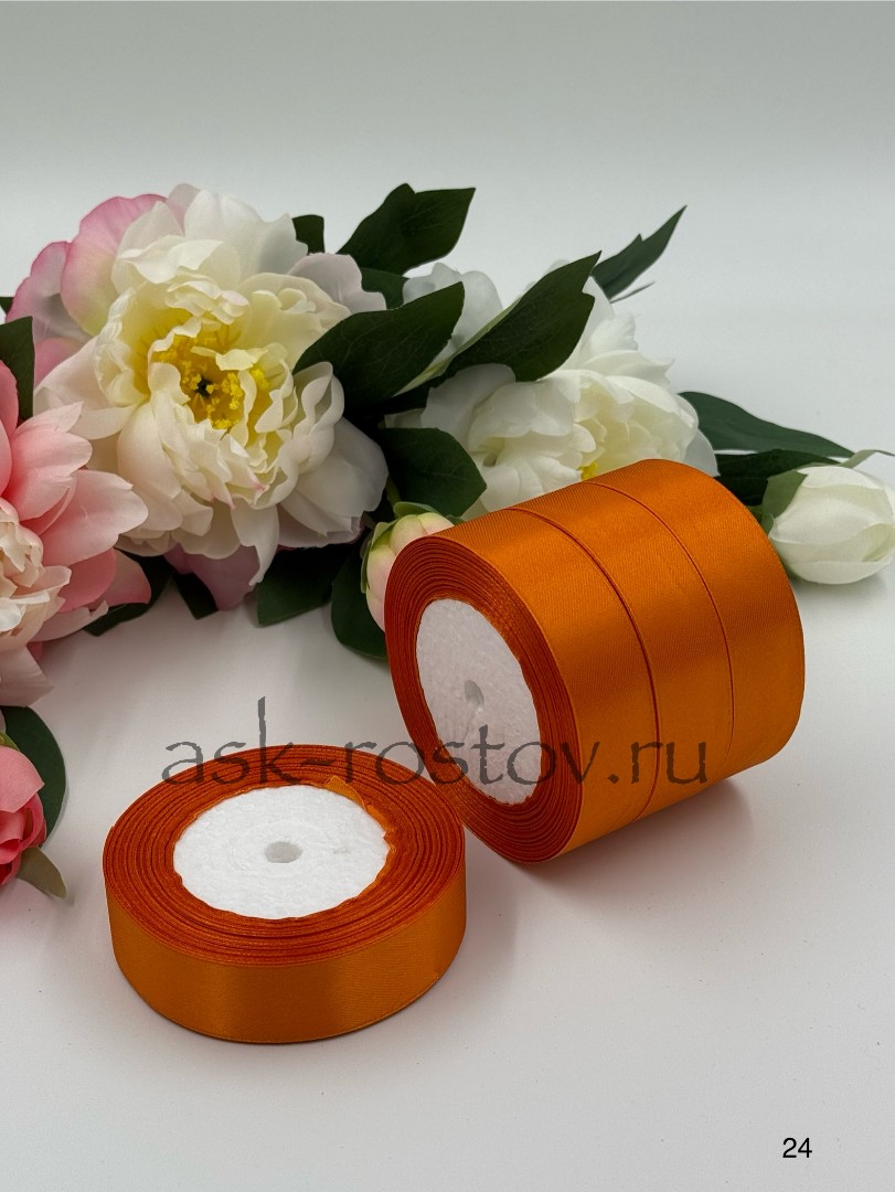 Лента атласная (2,5 см*22,85 м) Оранжевый, 1 шт.