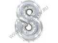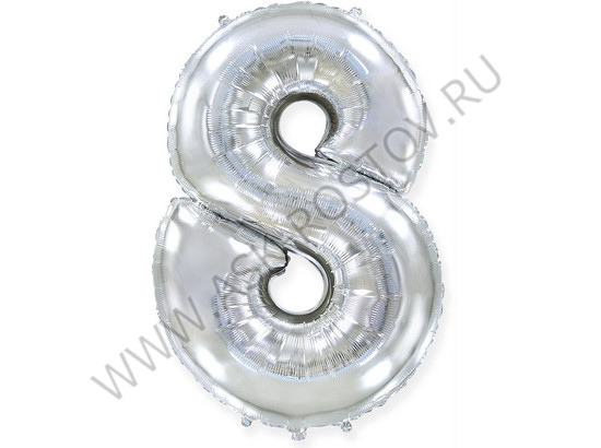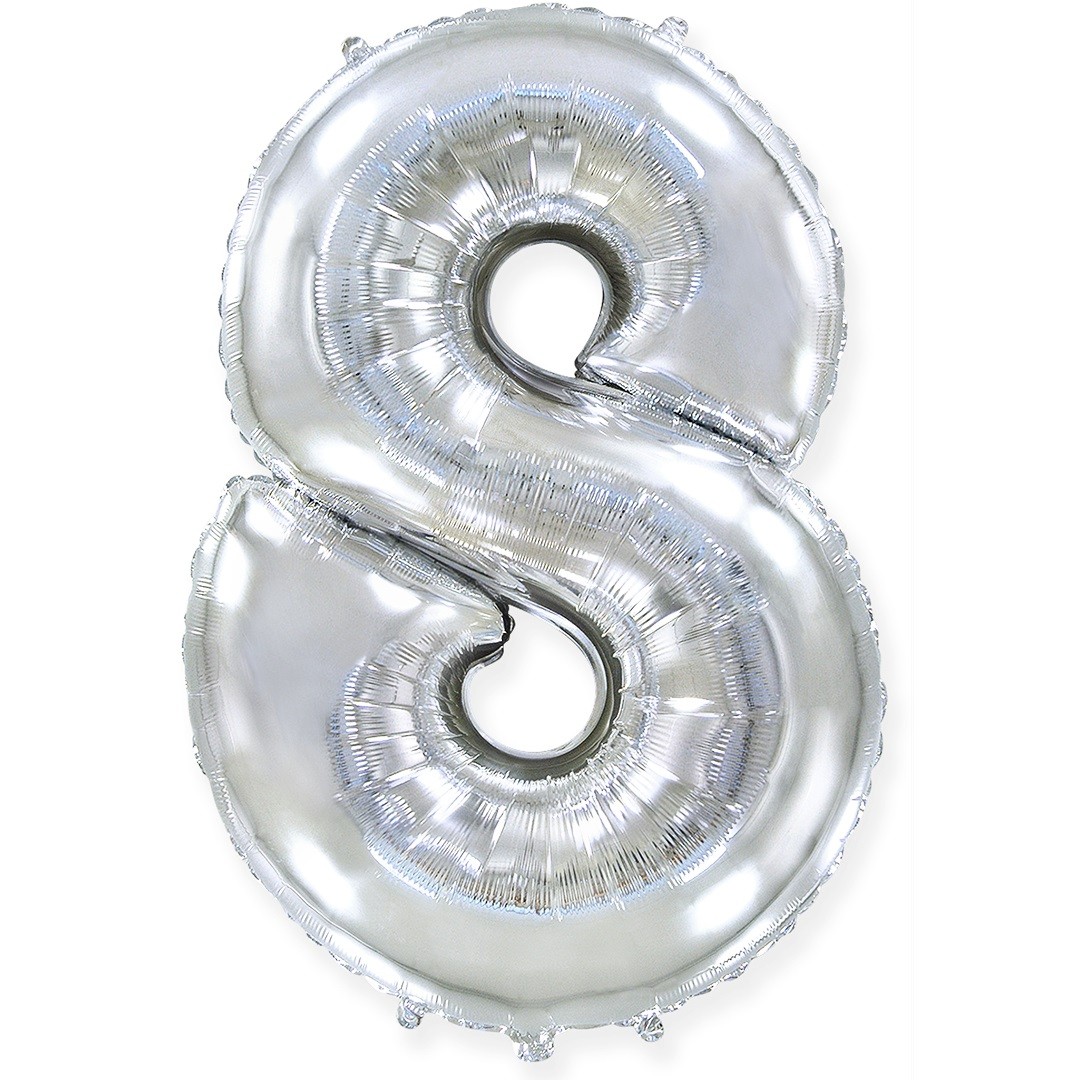 Шар (40''/102 см) Цифра, 8, Серебро, Металлик, 1 шт. в уп.