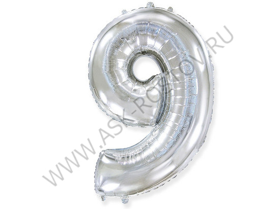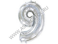 Шар (40''/102 см) Цифра, 9, Серебро, Металлик, 1 шт. в уп.